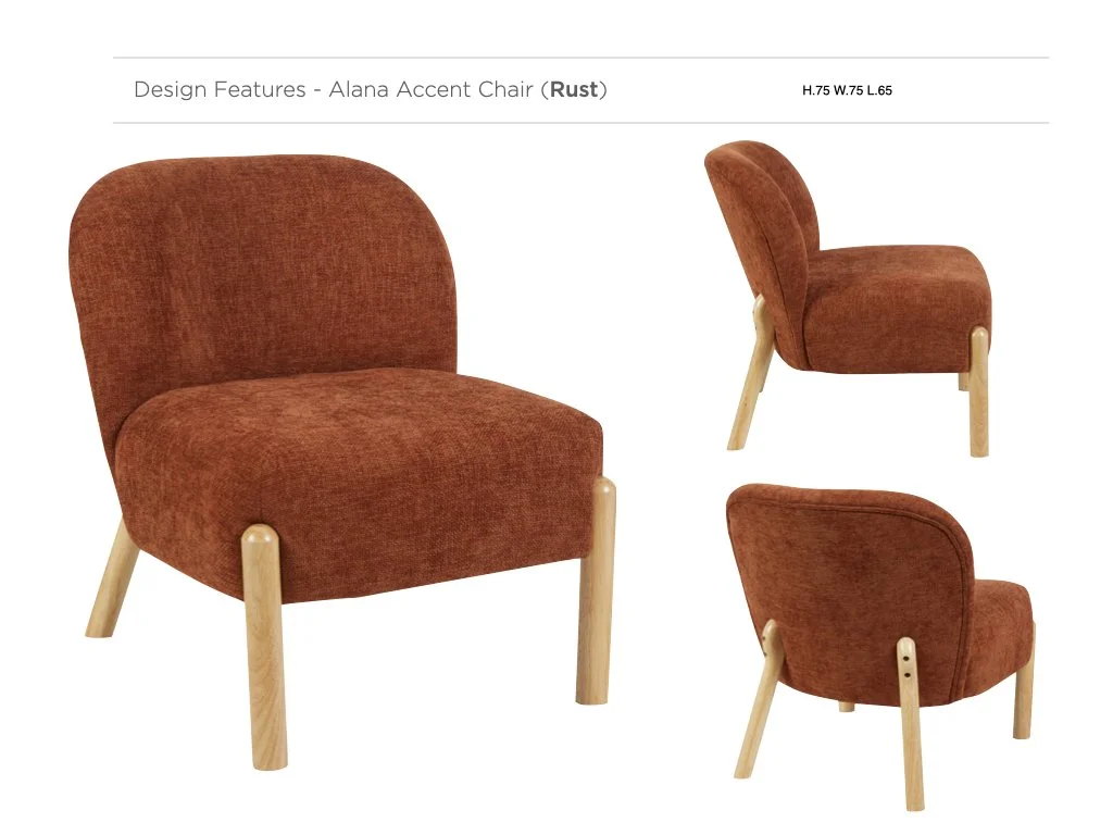 Elevate your home’s aesthetic with a touch of understated luxury. The Alana accent chair features a rich, textured upholstery, available in four on trend colours, Denim Blue, Moss Green, Ochre and Rust, all of whom will bring depth and sophistication to any room. Its armless "slipper" design provides an open, airy feel, making it an excellent choice for smaller spaces that need a big personality.