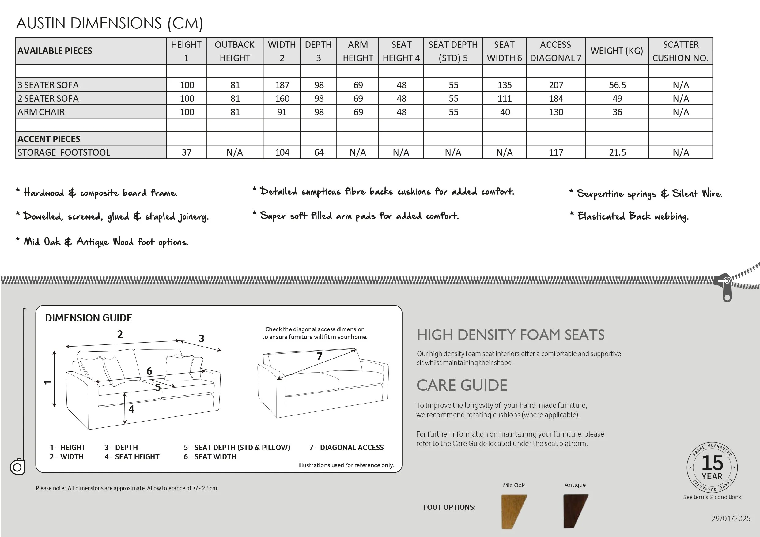Further Colour Options/Feet Option Can be added on the additional information form at check out