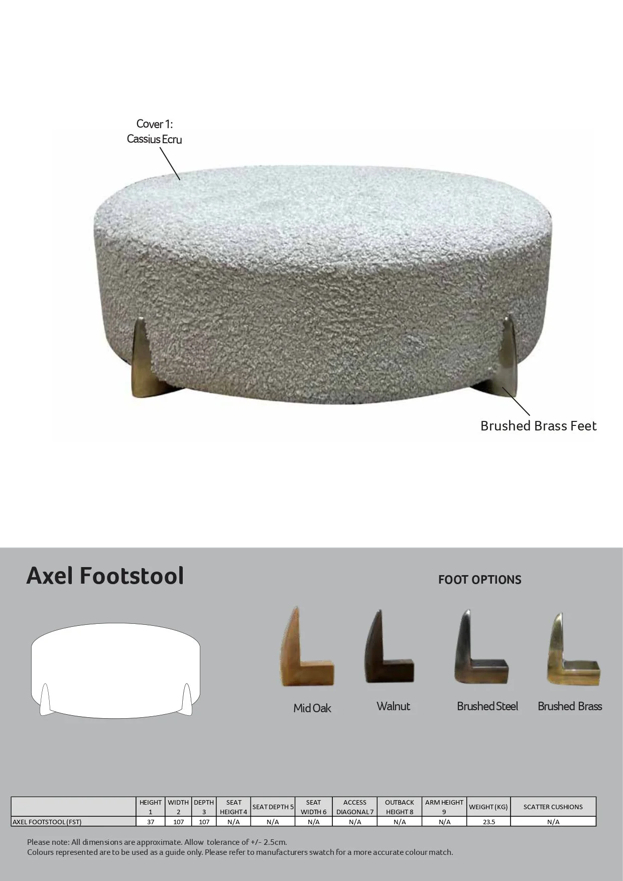Sofas › Axel Round Footstool Image 1 of 1 Axel Round Footstool Sale Price: £399.00 Original Price: £499.00 Further Colour Options/Feet Option Can be added on the additional information form at check out Colour: Custom Made Buy it as shown in Picture Add To Cart Added! Further Colour Options/Feet Option Can be added on the additional information form at check out You Might Also Like Calder Footstool Sale Price: £449.00 Original Price: £549.00 Sale Atlantis Sofa Range from £399.00 Sale Utopia Sofa Range from £599.00 Sale Zuzana Leather Sofa Range from £699.00 Sale Lara Sofa Range from £549.00 Sale