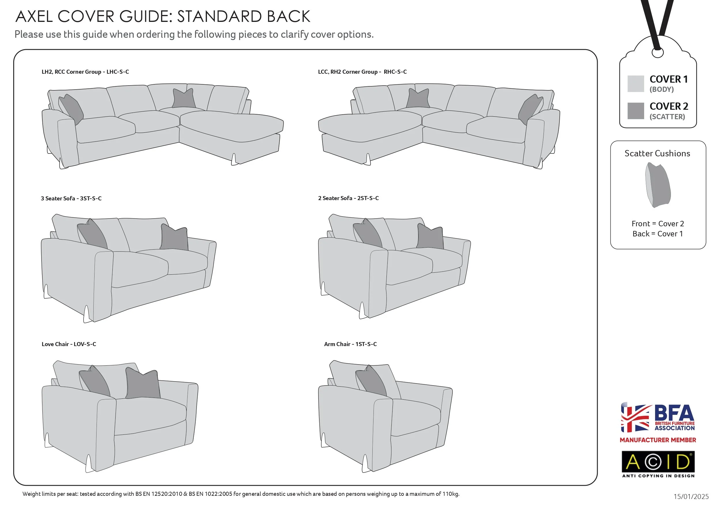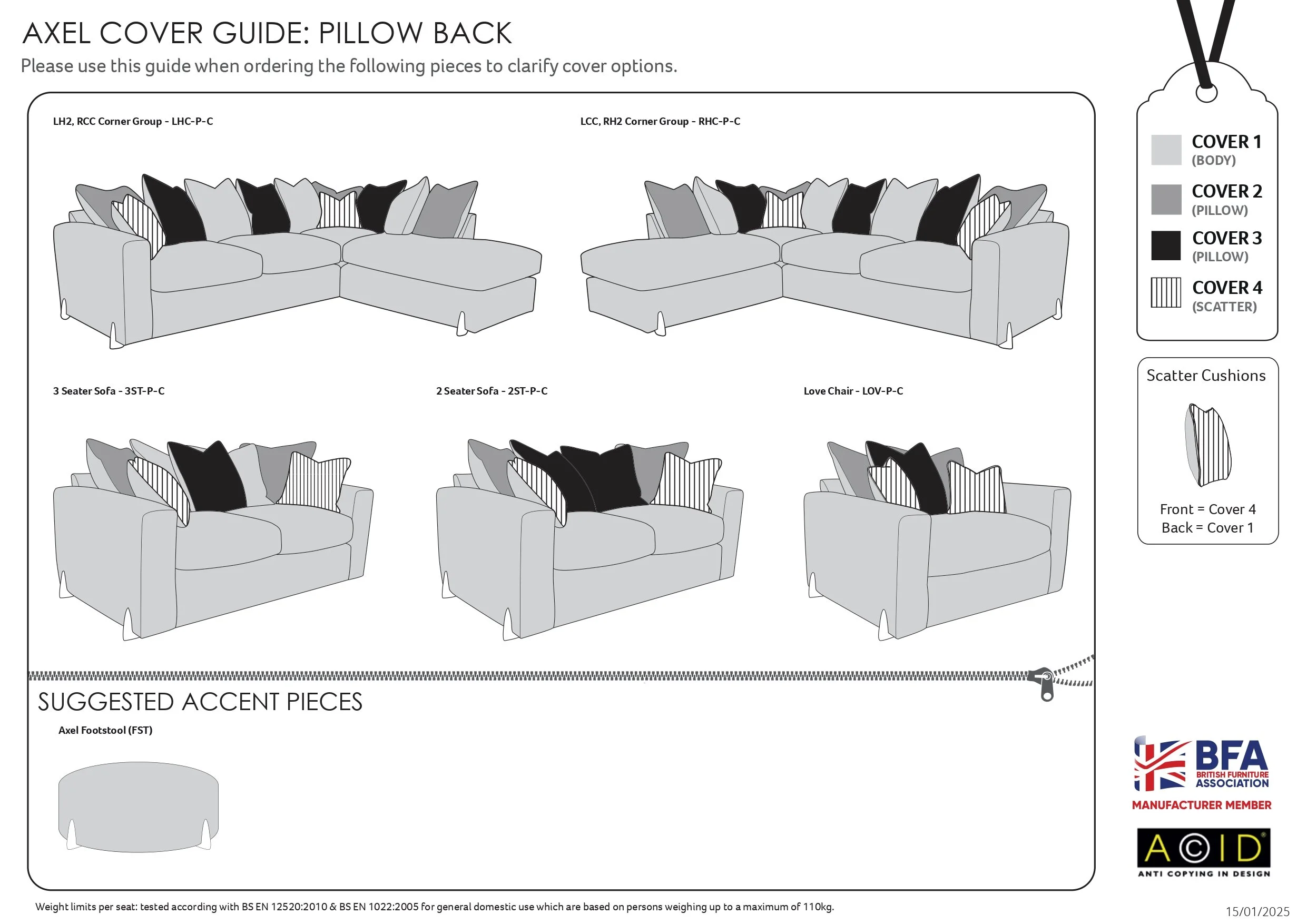 We only show the best selling fabrics and colours which you can select from the list. However as a major Buoyant Stockist you can select further colours/ Scatter Options/ Foot Options. These is a section in the Checkout page where you can list all your choices. Just select custom made from the drop down box and then put at your choices at Checkout. If we have any queries on your choices we will call you straight away.