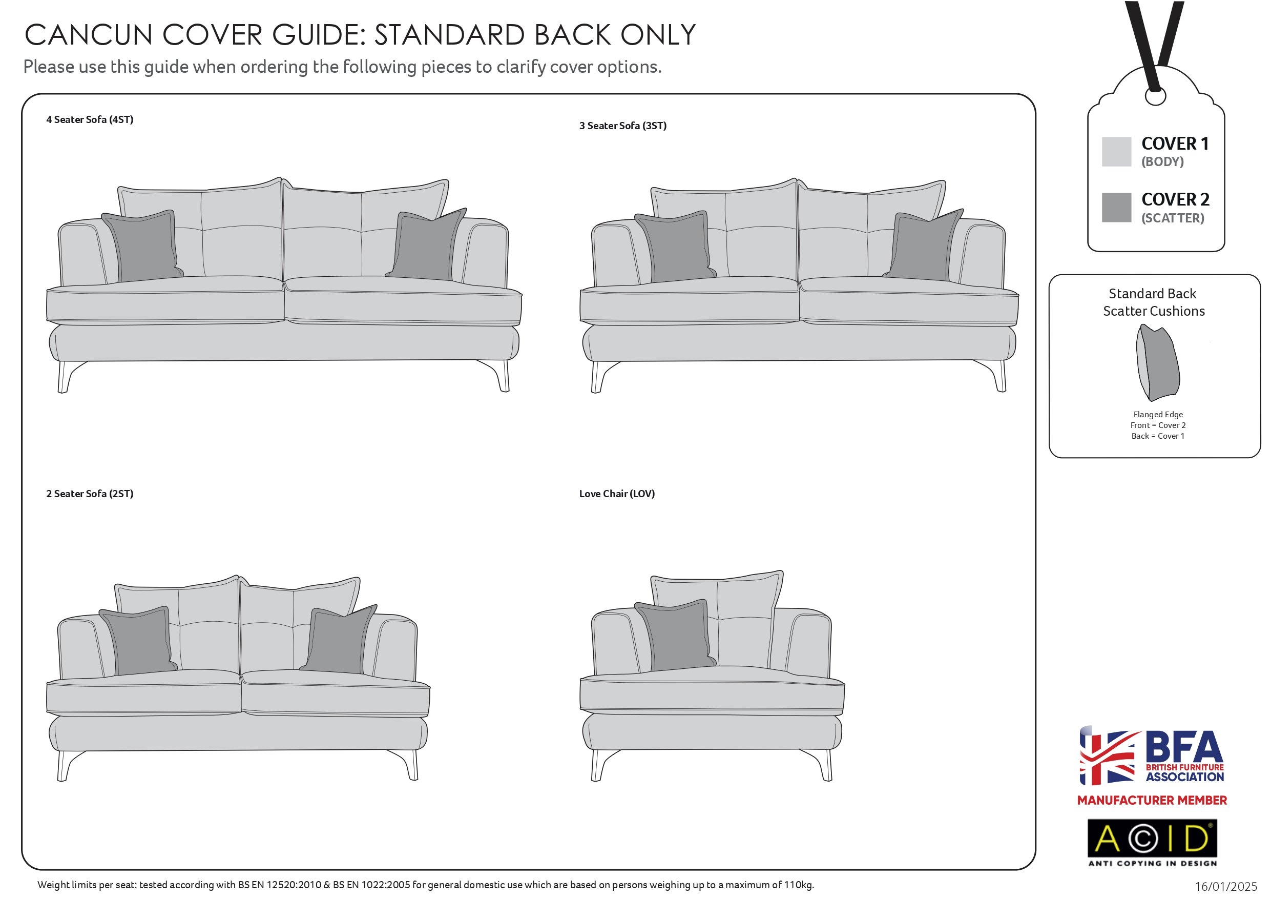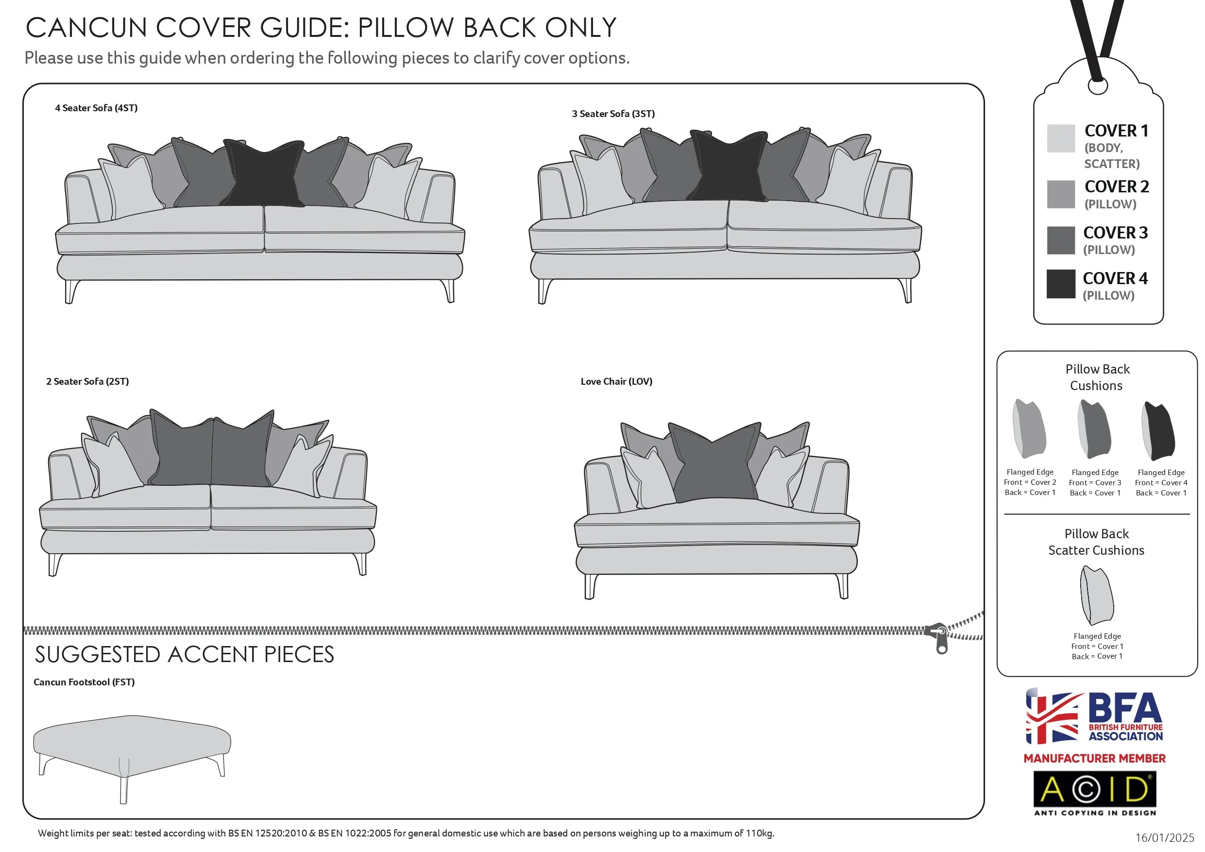 We only show the best selling fabrics and colours which you can select from the list. However as a major Buoyant Stockist you can select further colours/ Scatter Options/ Foot Options. These is a section in the Checkout page where you can list all your choices. Just select custom made from the drop down box and then put at your choices at Checkout. If we have any queries on your choices we will call you straight away.