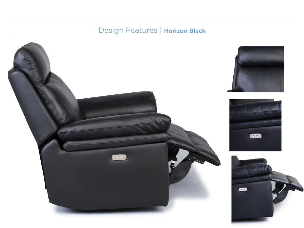 Horizon Power Reclining Sofa Range - Black