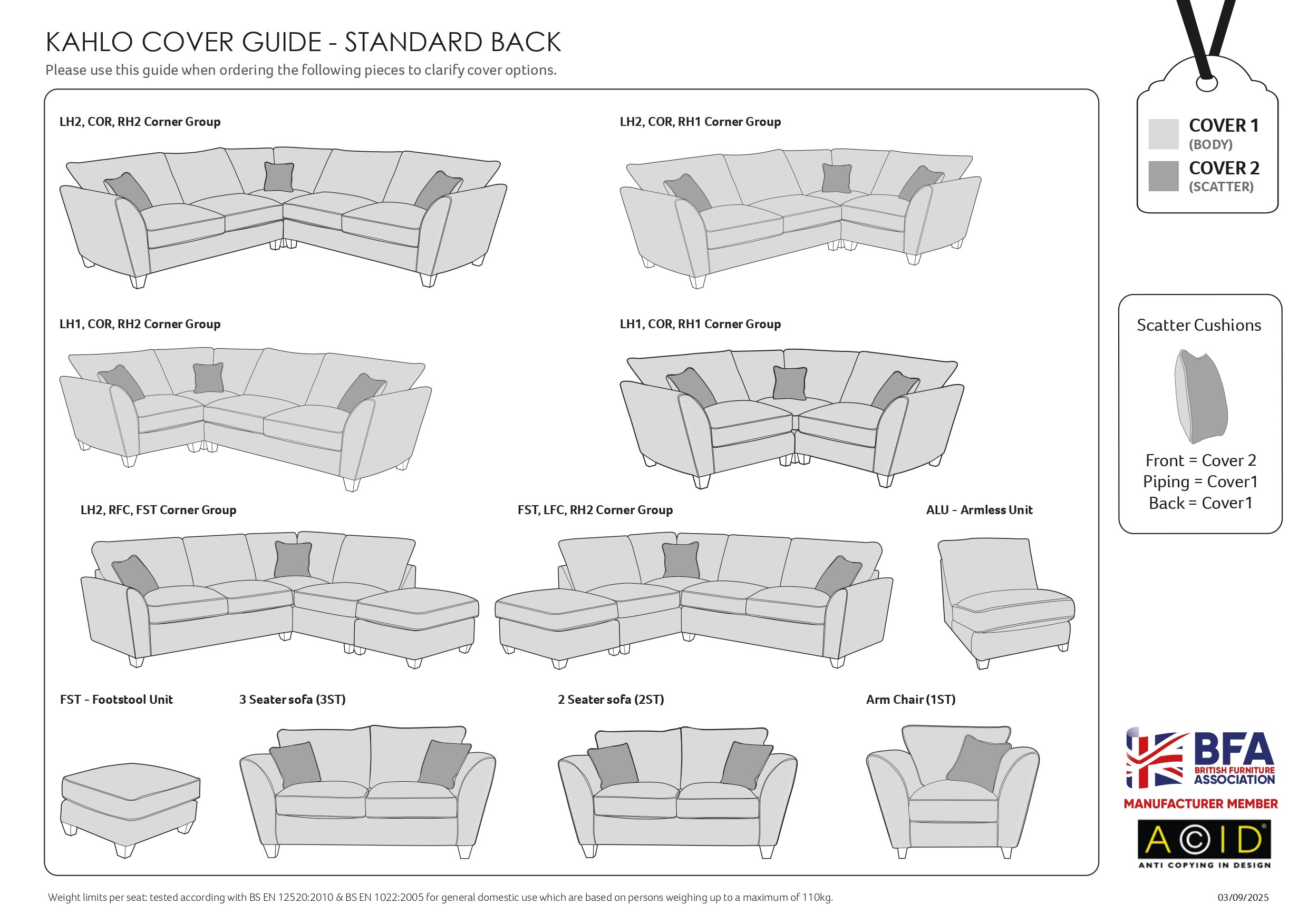 We only show the best selling fabrics and colours which you can select from the list. However as a major Buoyant Stockist you can select further colours/ Scatter Options/ Foot Options. These is a section in the Checkout page where you can list all your choices. Just select custom made from the drop down box and then put at your choices at Checkout. If we have any queries on your choices we will call you straight away.