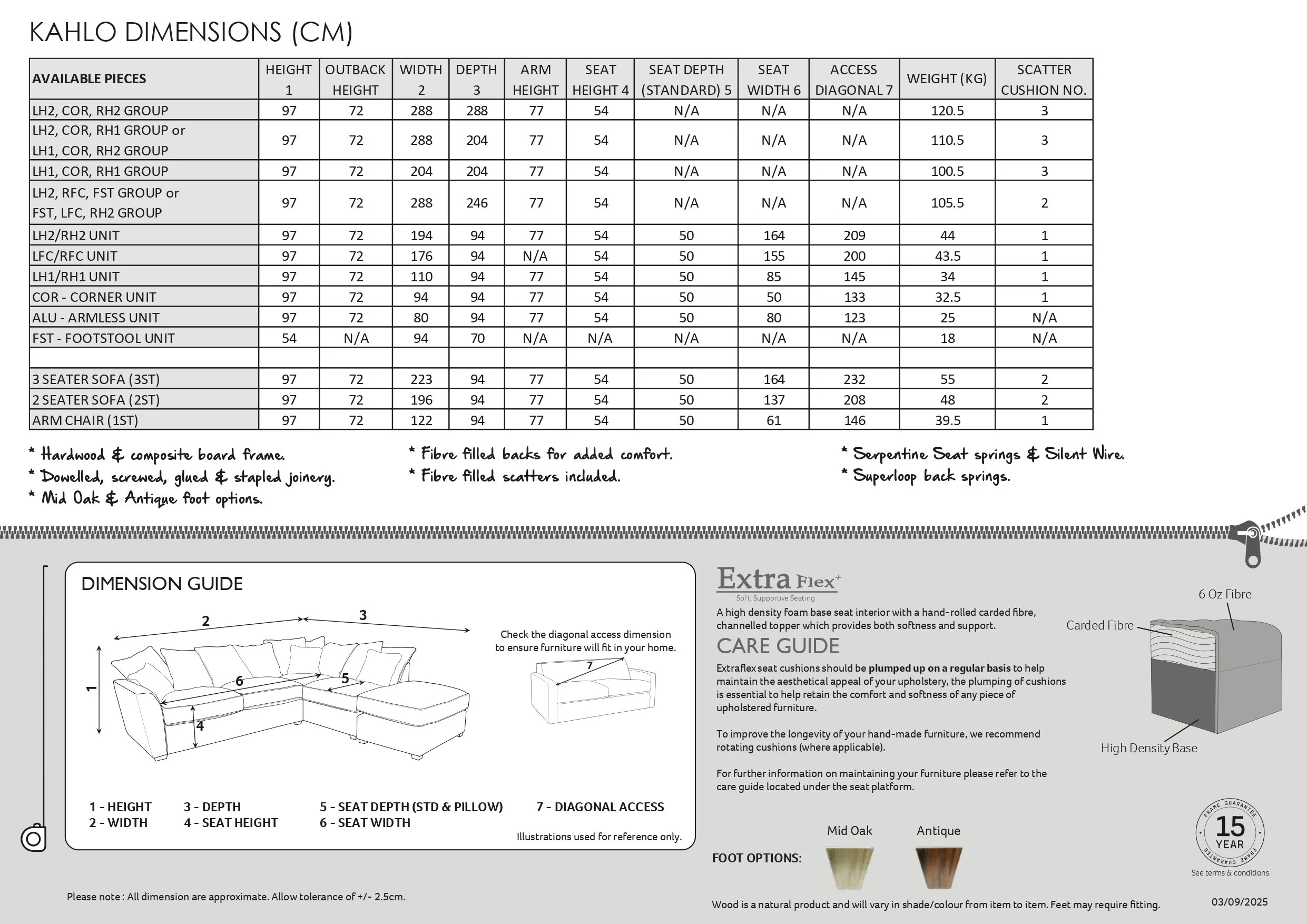 Further Colour Options/Feet Option Can be added on the additional information form at check out