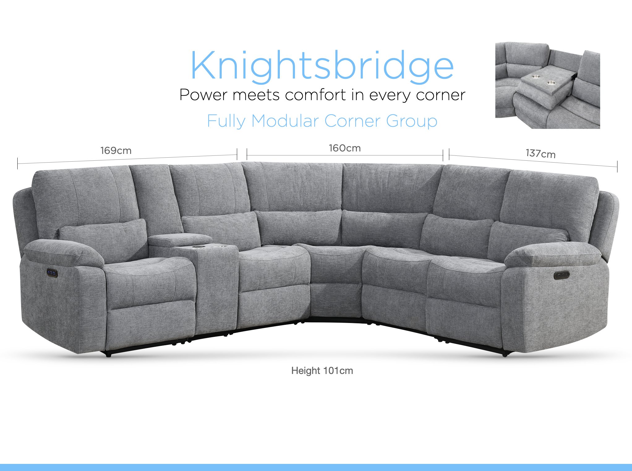 Designed for true comfort, the suite also features lumbar support to help you unwind in complete ease. Available as a 3 seater, 2 seater and Armchair. The Knightsbridge is also available as a fully modular electric corner suite, with storage console, wireless charger and two cup holders