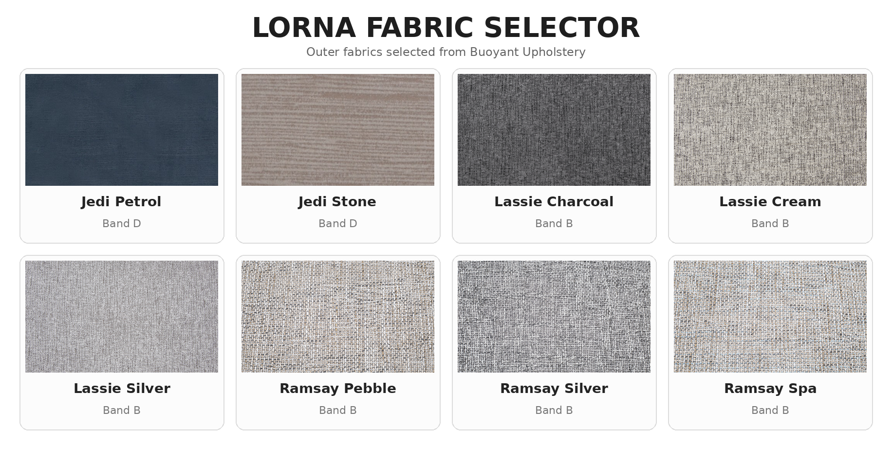We only show the best selling fabrics and colours which you can select from the list. However as a major Buoyant Stockist you can select further colours/ Scatter Options/ Foot Options. These is a section in the Checkout page where you can list all your choices. Just select custom made from the drop down box and then put at your choices at Checkout. If we have any queries on your choices we will call you straight away.