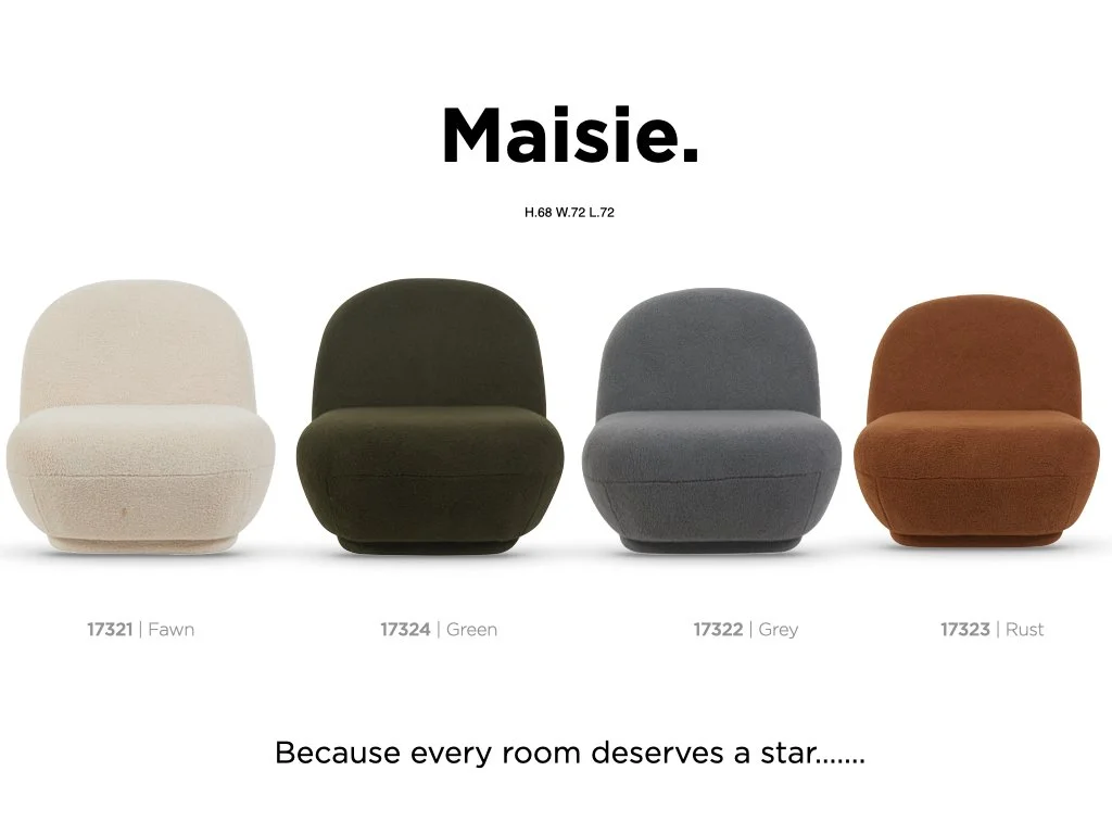 The Maisie Accent chair is the ultimate master of modern-organic comfort, designed to turn any quiet corner into a luxurious tactile retreat. It’s a bold statement piece that prioritises soft, sculptural lines and a cozy "sink-in" feel. Experience the perfect blend of playfulness and sophistication. This accent chair features an ultra-low profile and a generous, rounded silhouette that brings a sense of grounded tranquility to your living space