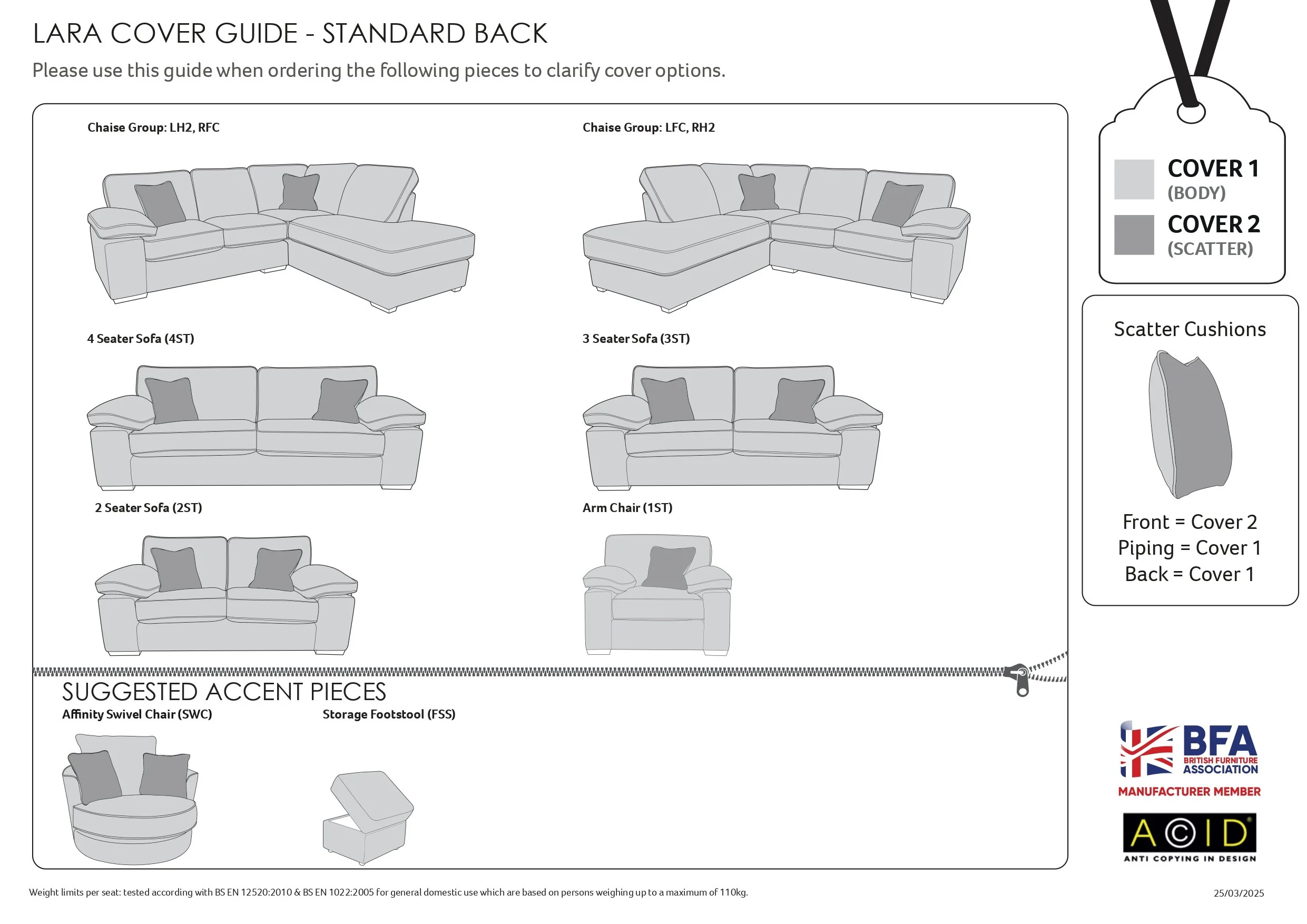 We only show the best selling fabrics and colours which you can select from the list. However as a major Buoyant Stockist you can select further colours/ Scatter Options/ Foot Options. These is a section in the Checkout page where you can list all your choices. Just select custom made from the drop down box and then put at your choices at Checkout. If we have any queries on your choices we will call you straight away.
