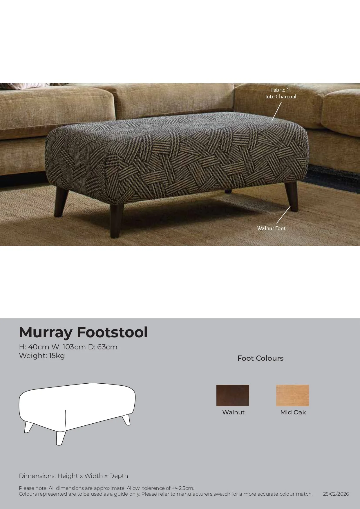 Sofas › Murray Footstool Image 1 of 1 Murray Footstool Sale Price: £399.00 Original Price: £499.00 Further Colour Options/Feet Option Can be added on the additional information form at check out Colour: Custom Made Buy it as shown in Picture Add To Cart Added! Further Colour Options/Feet Option Can be added on the additional information form at check out You Might Also Like Logan Swivel Footstool Sale Price: £499.00 Original Price: £599.00 Sale Libra Leather Sofa Range from £699.00 Sale Mala Sofa Range from £399.00 Sale Abel Sofa Range from £449.00 Sale Nyla Leather Sofa Range from £699.00 Sale