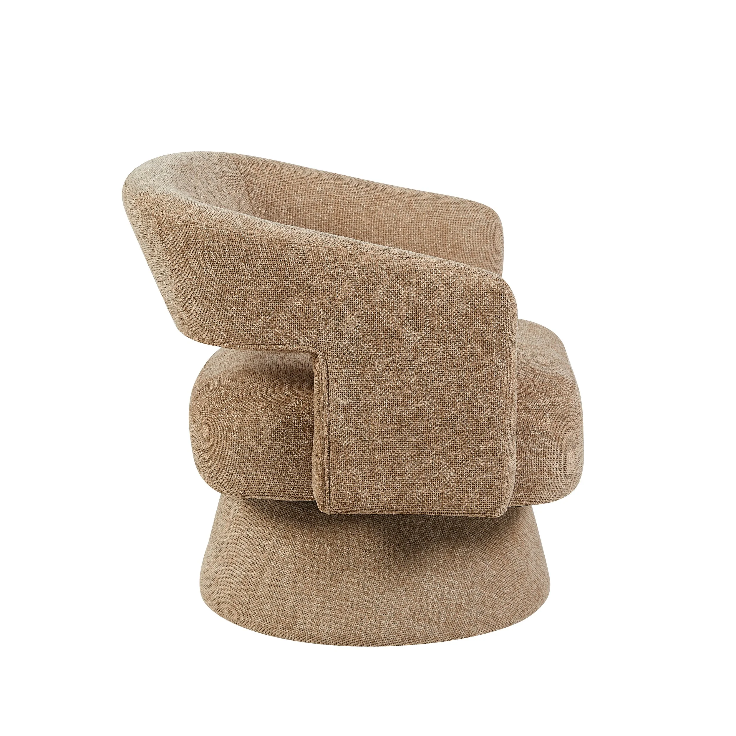 Make a statement from every angle. The Orla Accent chair features a unique, architectural "cut-out" backrest that creates a sense of lightness while providing a supportive, wraparound feel. Whether you choose the earthy Green, neutral Oatmeal, or vibrant Ochre, its plush upholstery and distinctive tapered pedestal base bring a high-end designer vibe to any modern living room or creative home office. Orla features a full swivel base, allowing you to stay in the center of the action or turn toward the view with ease