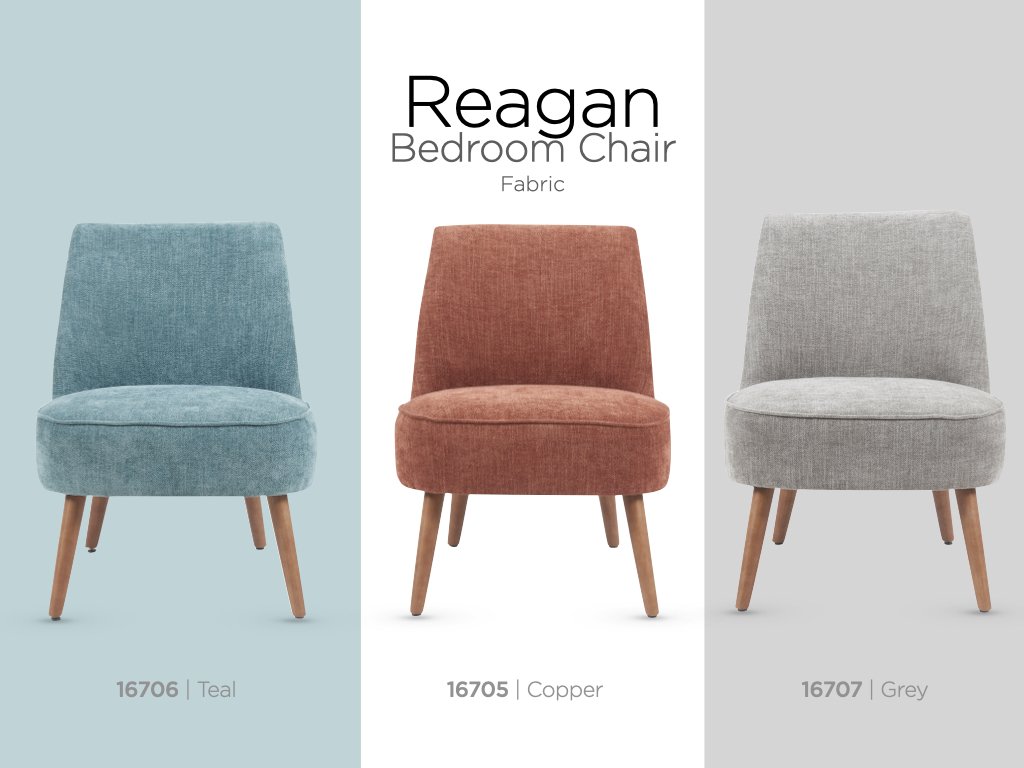 Introducing our new collection of small, modern bedroom chairs, designed to bring style and comfort to your personal space! Reagan chairs are perfectly crafted with sleek lines and a contemporary flair, these fabric chairs come in three stunning colours—rich copper, vibrant teal, and sophisticated grey—allowing you to find the perfect match for any décor. Whether you’re looking to create a cosy reading nook, enhance your vanity area, or simply add a chic accent piece to your room, these chairs offer the perfect blend of comfort and elegance in a compact size. Add a touch of modern luxury to your room today.